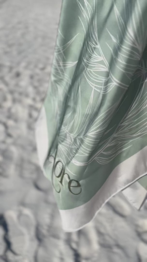 A quiet sage palm printed logo scarf for the days you just need a subtle pop. Printed on the silkiest satin we’ve ever felt.
